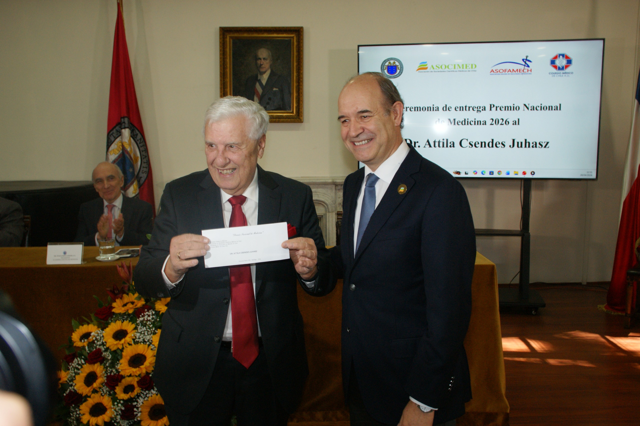 Se llevó a cabo la ceremonia de entrega del Premio Nacional de Medicina 2026, este martes 28 de abril, instancia organizada por la Academia Chilena de Medicina en conjunto con la Asociación de Sociedades Científicas Médicas de Chile (ASOCIMED), la Asociación de Facultades de Medicina de Chile (ASOFAMECH) y el Colegio Médico de Chile.