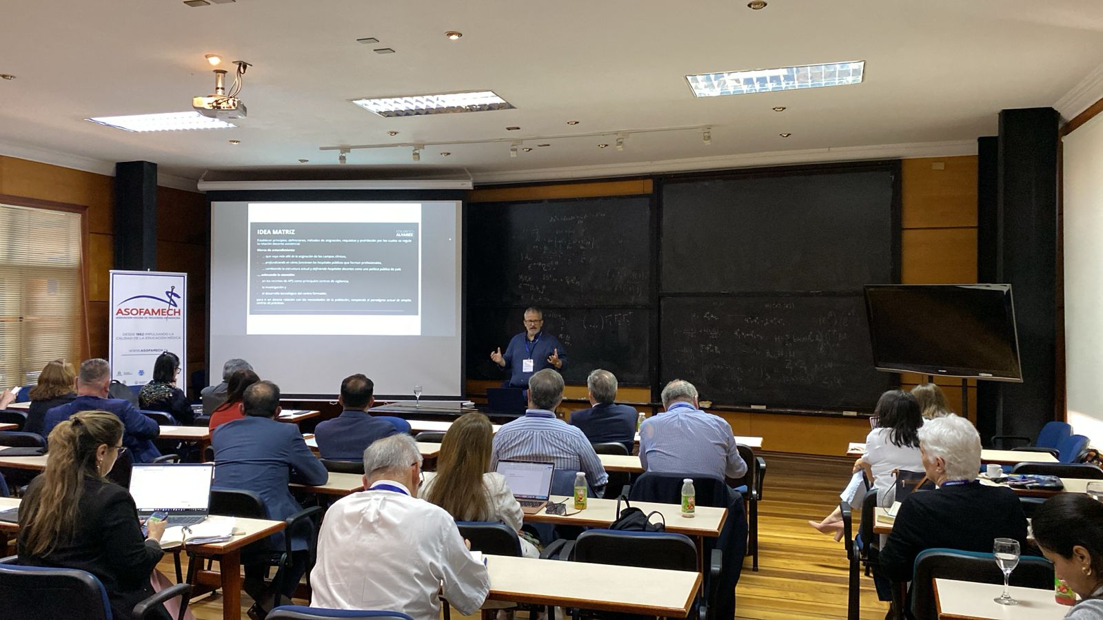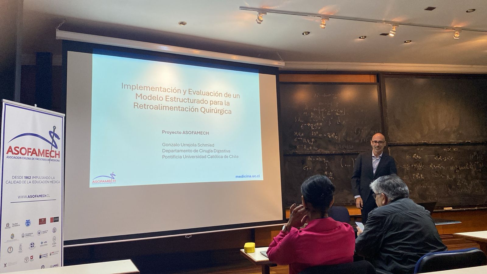 La jornada del martes 13 continuó con la presentación del proyecto ganador del Concurso de Investigación en Educación en Ciencias de la Salud ASOFAMECH 2025, expuesto por el Dr. Gonzalo Urrejola, centrado en la implementación de un modelo estructurado para la retroalimentación quirúrgica en formación de subespecialidad. Asimismo, el profesor Alberto Torres, presidente de la Red OFEM y académico de la Universidad de Antofagasta, junto a la profesora Andrea López, académica de la Universidad Finis Terrae, presentaron el estado de avance del XII Congreso Internacional de Educación en Ciencias de la Salud (CIECS 2026), reforzando el compromiso de la Asociación con el desarrollo académico y la investigación en educación médica.