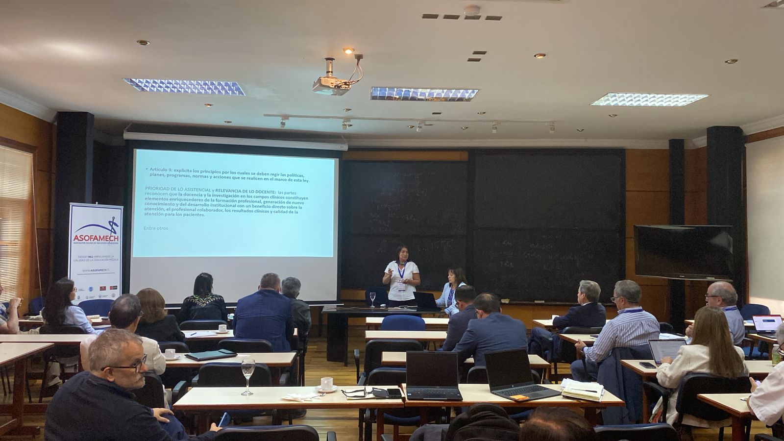 En la sesión de la tarde del lunes, el Consejo desarrolló un análisis integral de la Ley de Campos Clínicos, revisando sus implicancias normativas, académicas y proyectivas. Las exposiciones estuvieron a cargo del Sr. Eduardo Álvarez, abogado de ASOFAMECH, quien abordó los aspectos legales y su seguimiento; de la Dra. Andrea Mena (Universidad de Chile) y la Dra. Claudia Uribe (Pontificia Universidad Católica de Chile), en representación de la Comisión de Campos Clínicos de ASOFAMECH; de la Dra. Gisela Alarcón, decana de la Universidad Central, desde la visión de la Corporación de Universidades Privadas; y del Dr. Antonio Orellana, presidente de ASOFAMECH y decano de la Universidad de Valparaíso, quien presentó la perspectiva de la Academia Chilena de Medicina. La instancia permitió un diálogo técnico y fundamentado orientado a fortalecer la implementación de la normativa y su impacto en la formación médica.