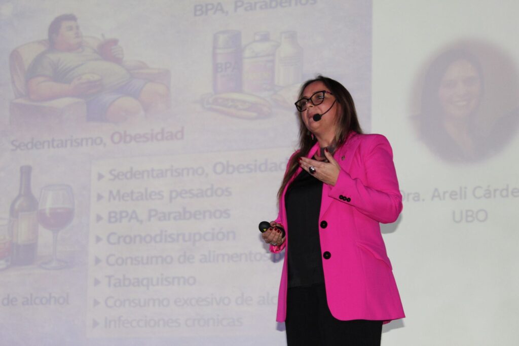 Durante el encuentro, la académica también dictó la charla “KLK4 (calicreína 4)”, en la que presentó los avances de su investigación orientada al desarrollo de un biomarcador para el diagnóstico precoz del cáncer de mama mediante un análisis de sangre. En su exposición, además, abordó factores preventivos asociados al desarrollo y progresión de esta enfermedad, como la alimentación, el sobrepeso y la inflamación crónica, destacando la importancia de mantener un peso saludable y hábitos alimentarios adecuados para reducir riesgos.